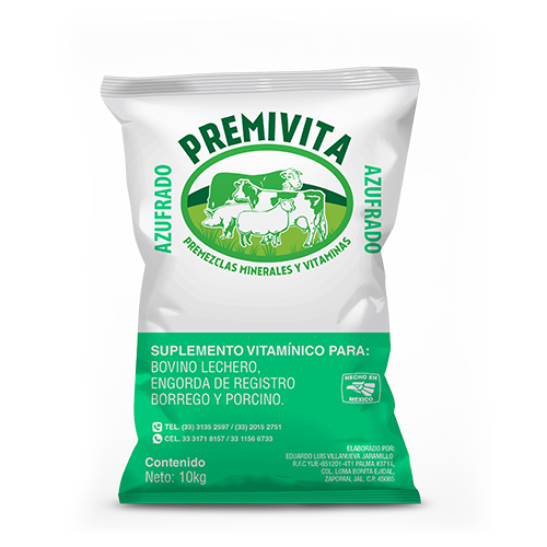 Presentación de 10Kgrs, mayor porcentaje de vitaminas y minerales sirve para ganado de engorda como lechero mejorando la producción. Contenido Vitamina A(10,000,000UI), D3(5,000,000UI), E(250,000UI).